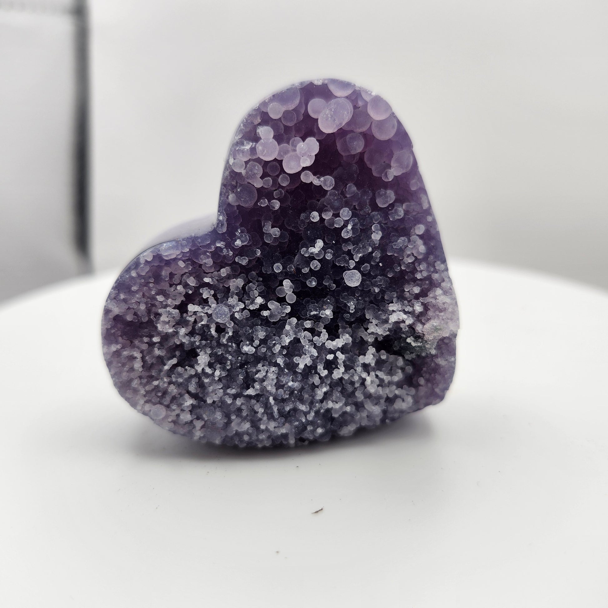 Introducing our Grape Agate Heart, weighing between 2-2.7oz. This unique and highly sought after gemstone features beautiful grape-like formations. Sourced from a rare deposit, this gem will make a one-of-a-kind addition to any collection. Expertly crafted and guaranteed to please, add this stunning piece to your collection today. Approximately 1.75 inch