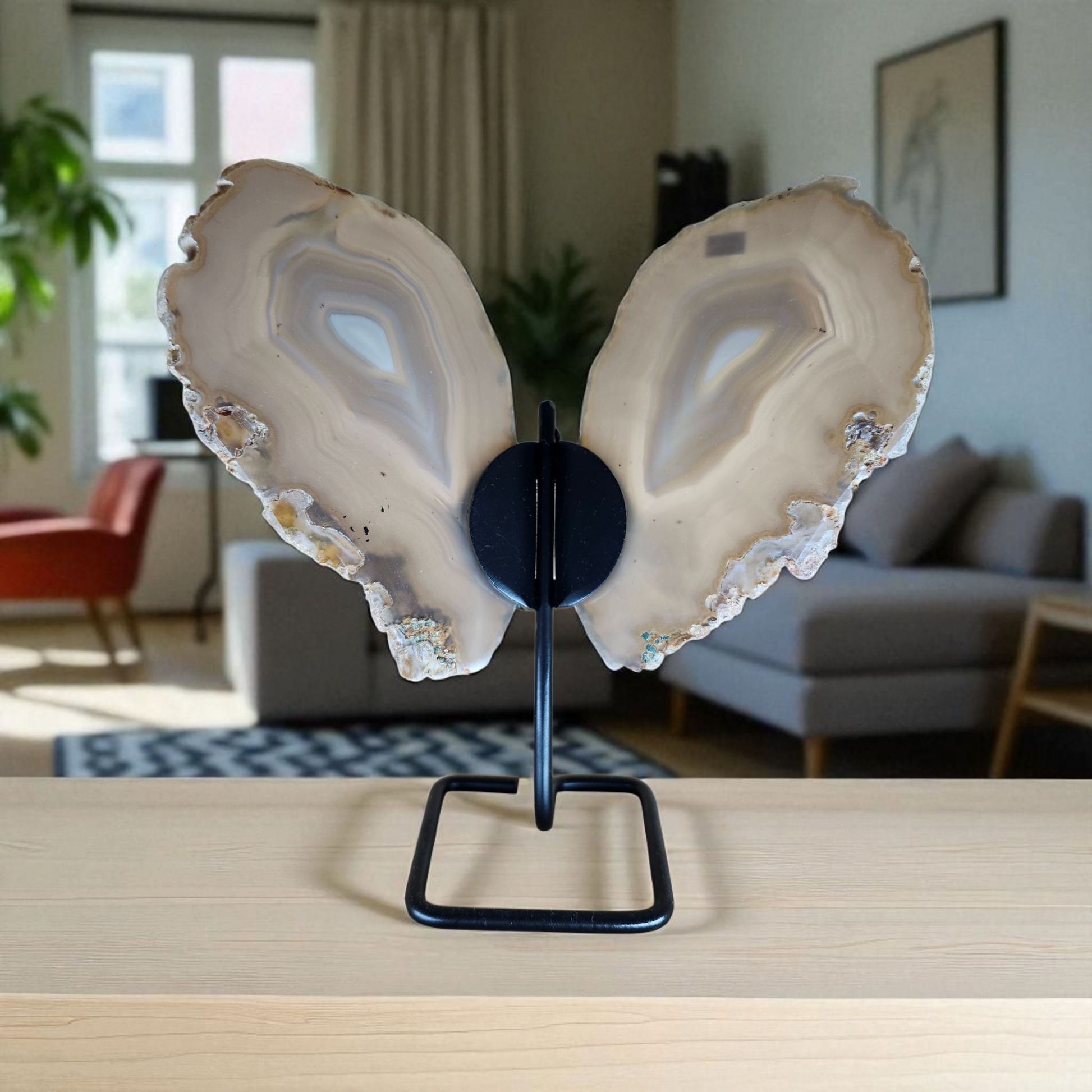 Add a touch of natural beauty to your home with our handcrafted Cream Banded Agate Butterfly. Each stunning piece is expertly crafted and showcases the intricate patterns of agate, making it a unique and eye-catching addition to any room. Bring a sense of calm and wonder with this beautiful butterfly.